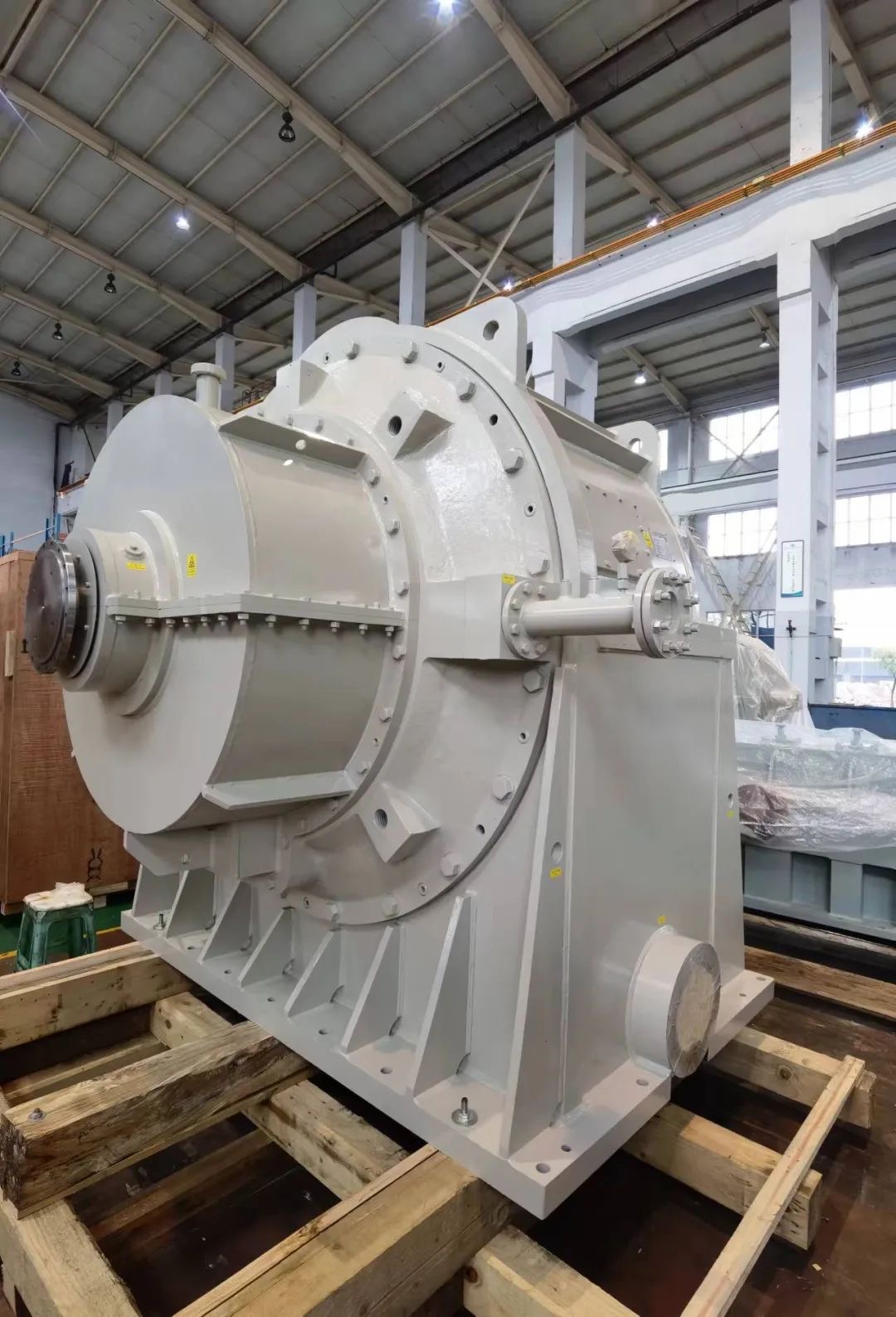 該項目是為某科研單位研發(fā)的大功率大速比NW型高速行星齒輪箱,齒輪箱額定功率8000kW,額定輸入轉(zhuǎn)速4000r/min,單級減速比20,齒輪線速度45m/s。該齒輪箱為我司自主開發(fā)的首臺NW型行星齒輪箱,解決了NW型行星機構(gòu)配齒設(shè)計、均載機構(gòu)設(shè)計、行星輪滑動軸承設(shè)計、薄壁氮化內(nèi)齒圈制造、雙聯(lián)行星輪加工制造等關(guān)鍵技術(shù),為我司大功率大速比高速行星齒輪箱的開發(fā)奠定了基礎(chǔ)。