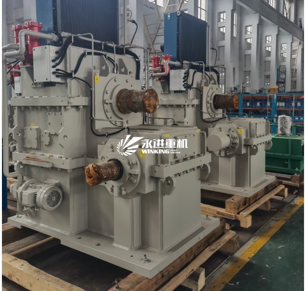 CQYLK550: 應用于機車試驗臺,功率2000kw, 轉速2000rpm,齒輪箱采用換擋與錐齒同步一體結構、立式傳動結構,大大縮小了客戶整體布局的空間尺寸。同時為客戶降低了試驗臺整體造價。傳統(tǒng)機車試驗臺均為換擋箱加同步箱布置,該類型產品的開發(fā),使類似產品在后續(xù)的市場中具有極強的競爭優(yōu)勢。
