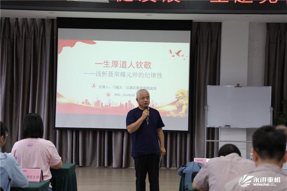 參觀后,在四樓會議室進行了黨紀學習教育,學習了習近平總書記在新時代推動西部大開發座談會上的重要講話 ,《中國共產黨紀律處分條例》,觀看了警示教育片。隨后,區關工委思想道德教育團成員、白沙鎮二級巡視員刁福久以“一生厚道人欽佩-淺析聶榮臻元帥的紀律性”為題,為全體黨員干部上了一堂生動的紀律黨課。他通過生動的講述,配以大量史料佐證,真實地再現了聶榮臻元帥在法國勤工儉學、中國革命實踐、國防科技發展等不同時期如何踐行初心和使命,嚴守黨的紀律,遵守黨的規定,清正廉潔,嚴格家風家訓,為黨和人民的事業奮斗一生的傳奇經歷。宣講中,刁福久飽含深情,黨員同志們凝神靜聽,現場不時爆發出熱烈掌聲。
